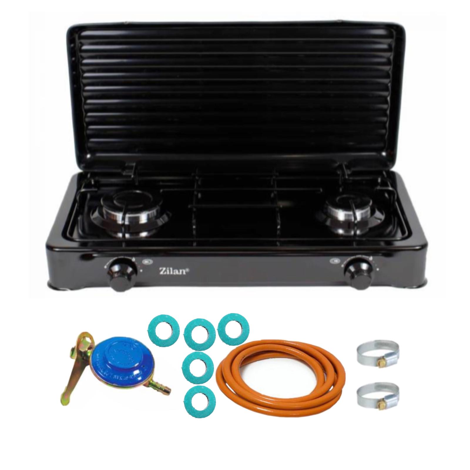 Aragaz cu 2 ochiuri, Negru, Floria si chit racordare pentru Butelie