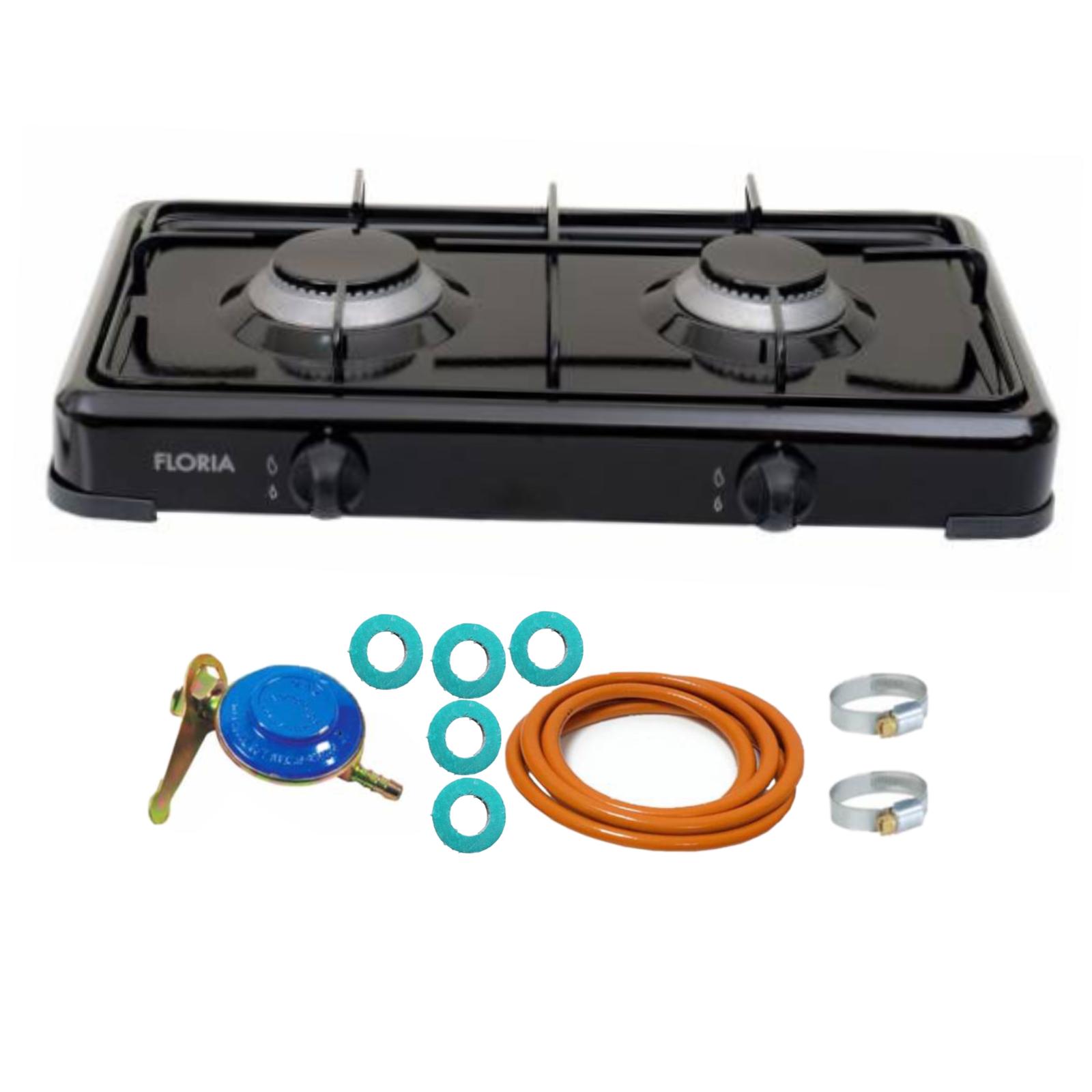 Aragaz cu 2 ochiuri, Negru, Floria si chit racordare pentru Butelie