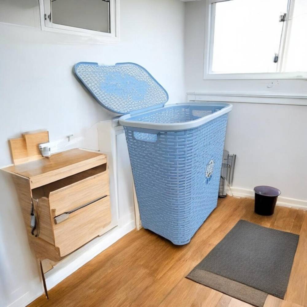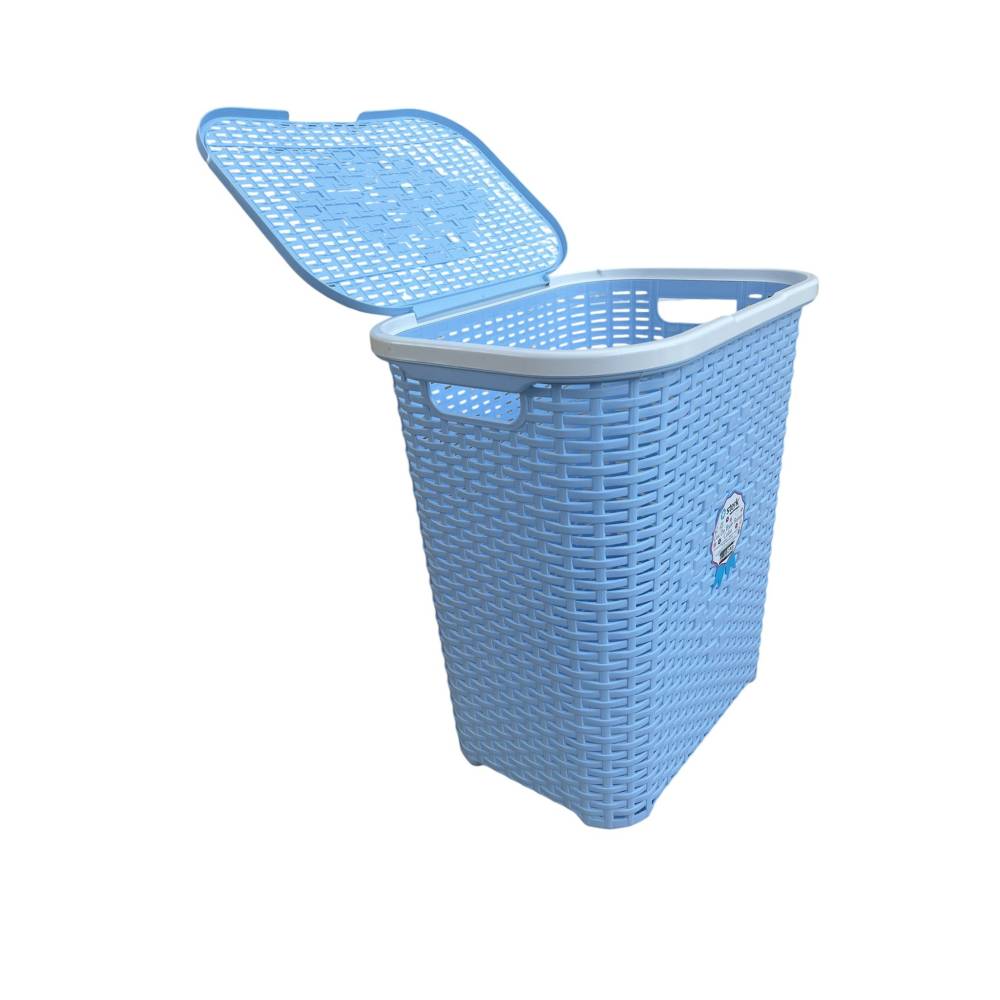 Cos de Rufe STERK, 46x36x51 cm, cu Capac, Ratan Albastru
