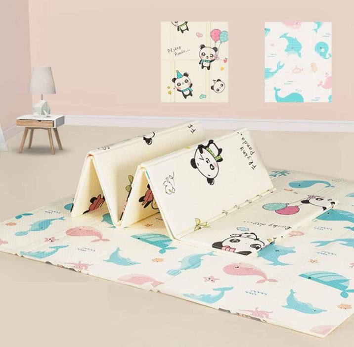 Covoras de joaca termic pentru copii, 2 fete, ursuleti si delfini, 180x200cm