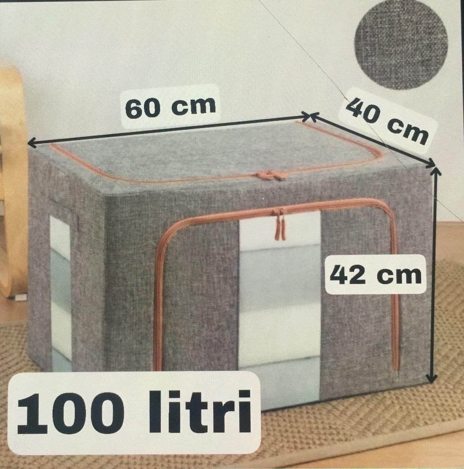 Cutie depozitare 100 litri cu fermoar, crem (pliabila)