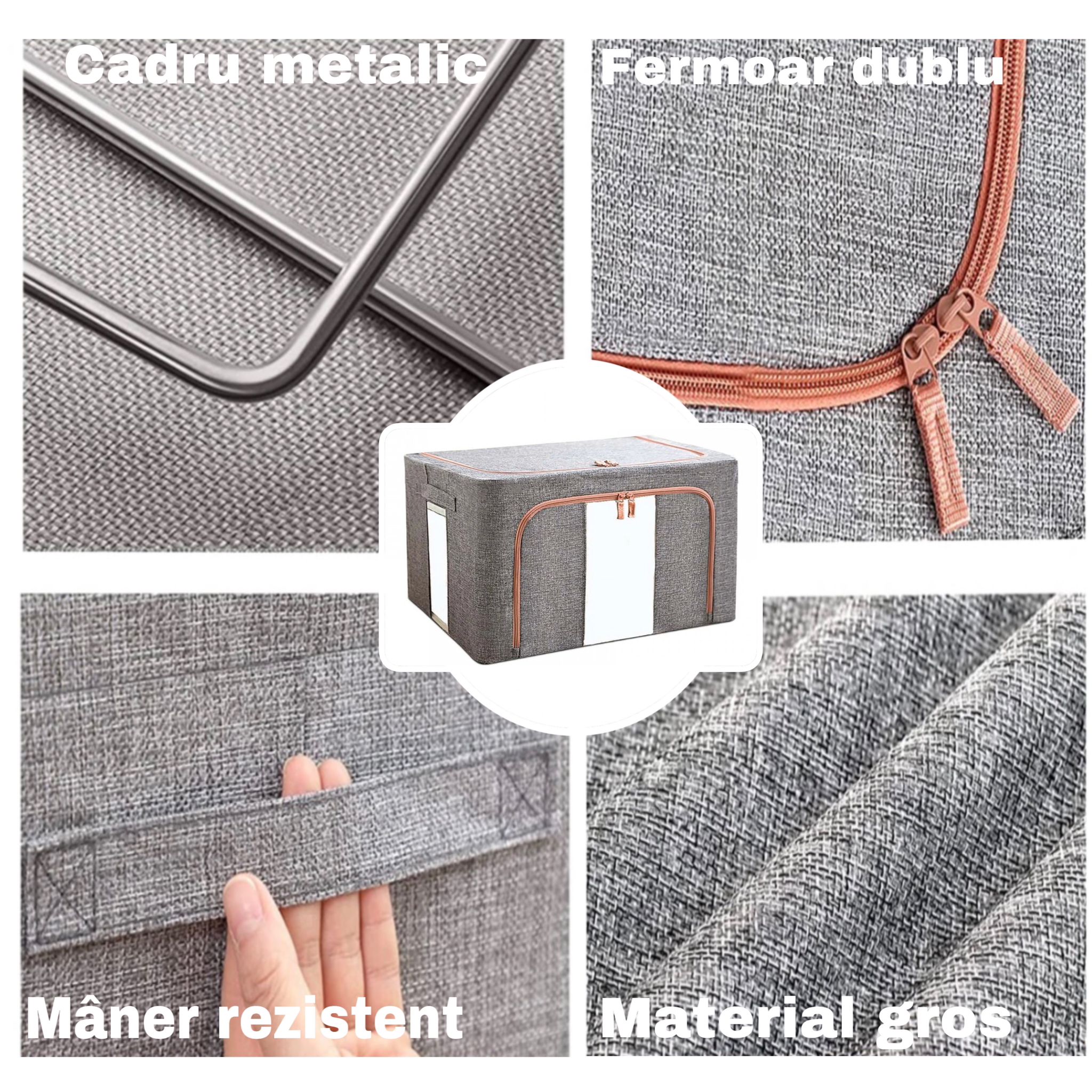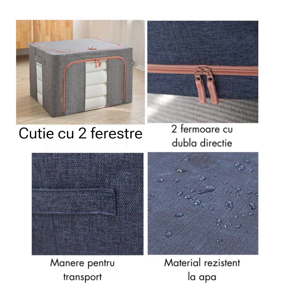 Cutie depozitare 66 litri cu fermoar, gri, 2 ferestre (pliabila)