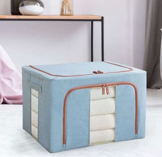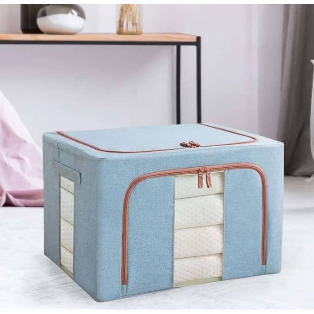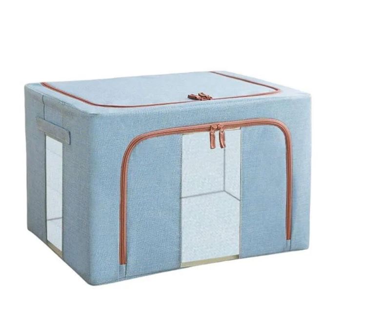 Cutie depozitare pliabila 100 litri cu fermoar, blue, 2 ferestre
