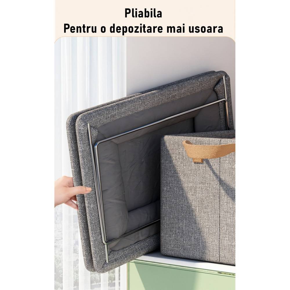 Cutie depozitare pliabila, 35 litri, tip cos textil roz
