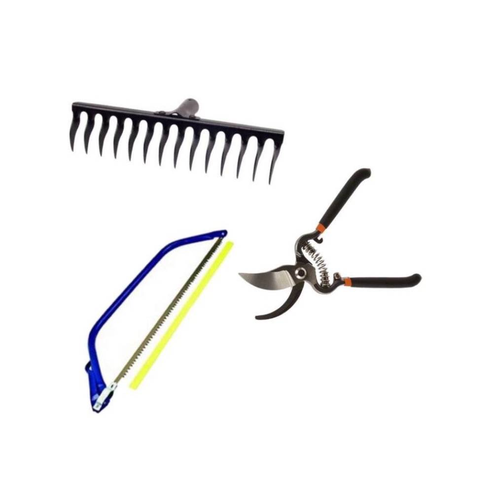 Fierastrau Coarba, 455mm +Foarfeca pentru Pomi, vita de vie + Grebla pentru gradina, neagra, 16 dinti
