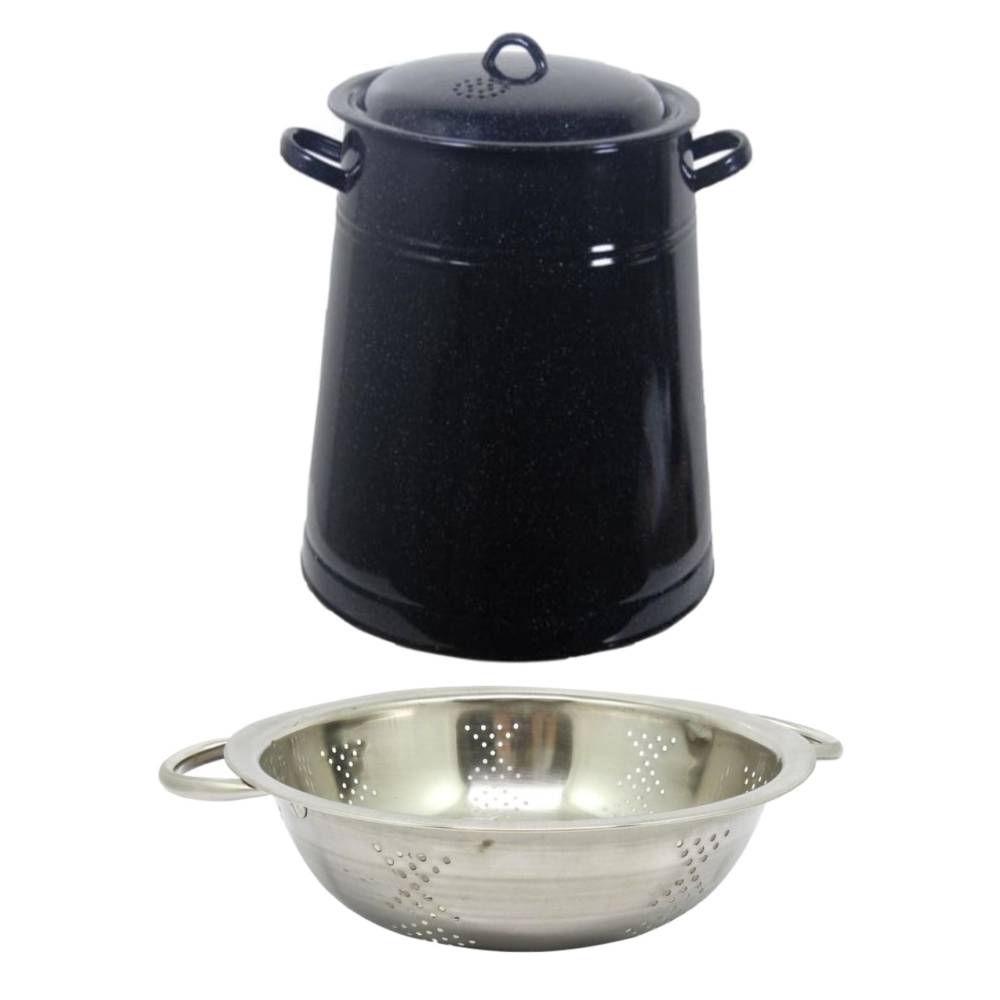 Garnita emailata neagra/bidon untura 20 L + Strecuratoare din inox cu manere, 24cm