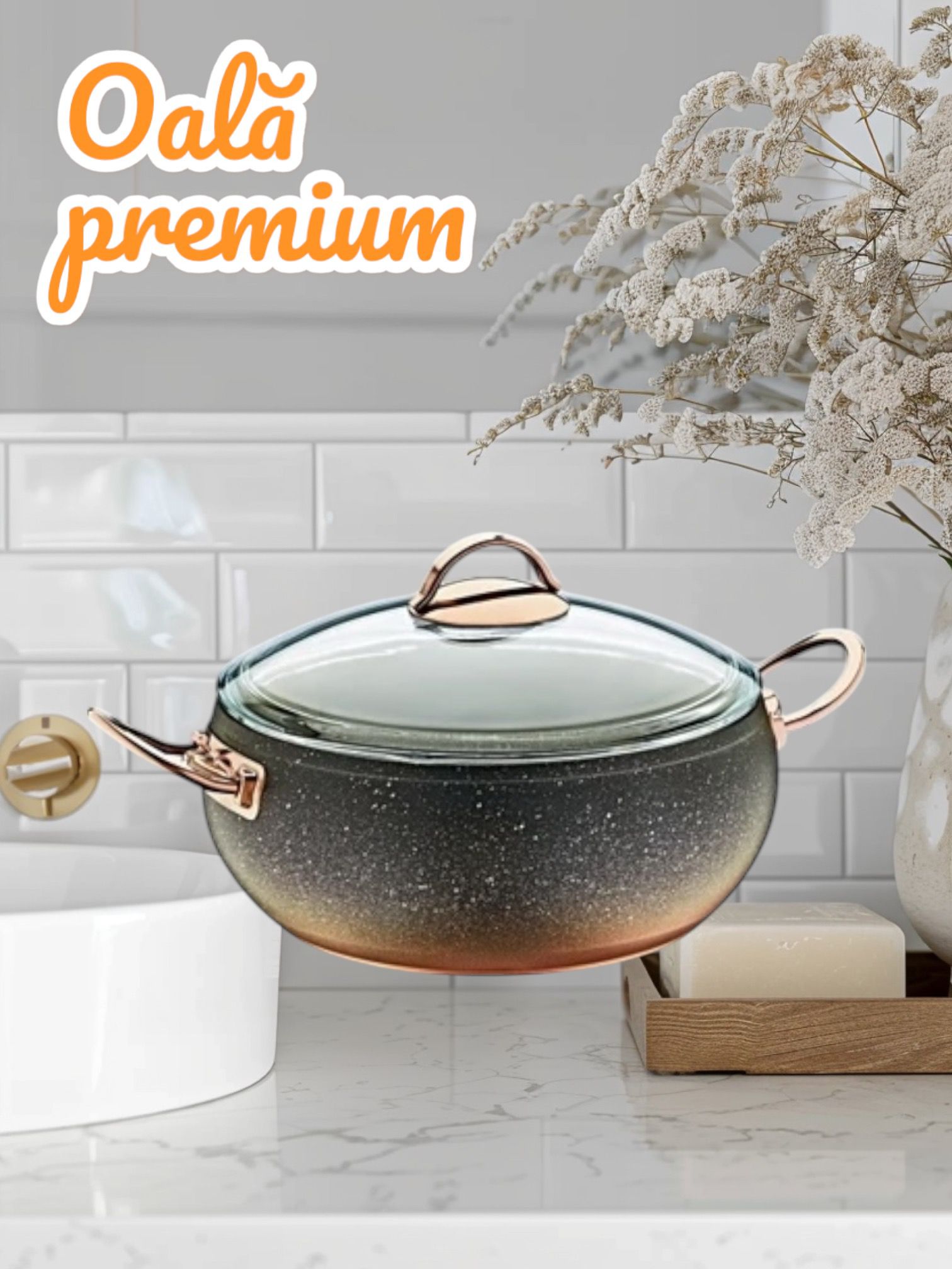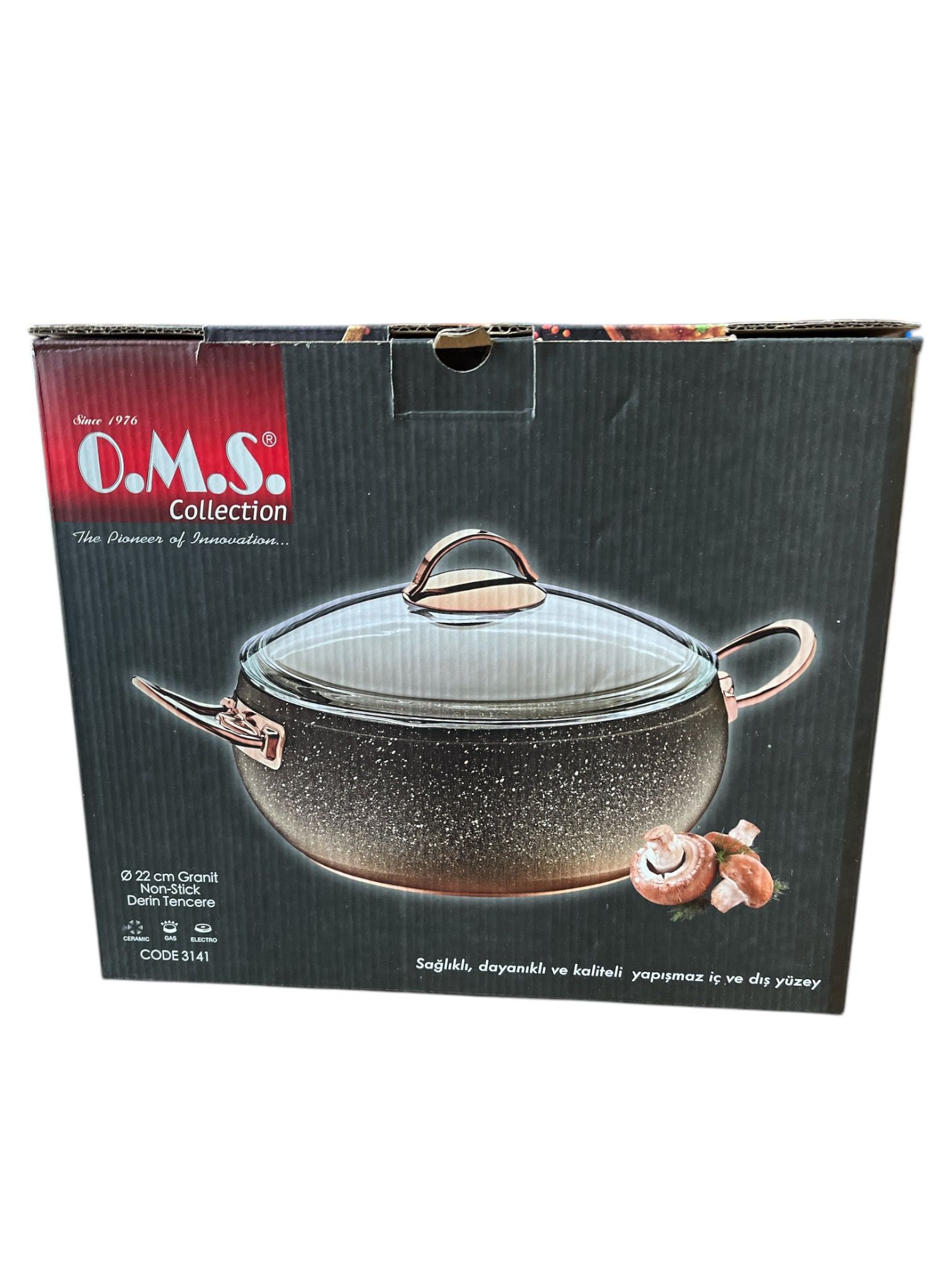 Oala antiaderenta 5.7l grosime 4mm granit Cupru OMS