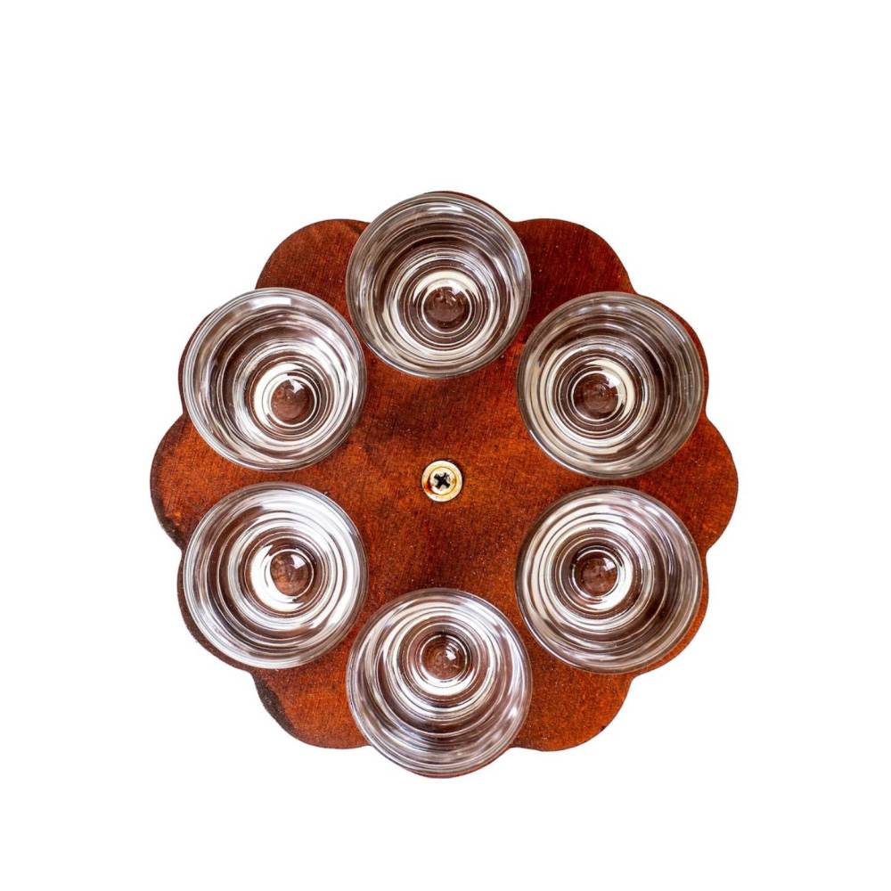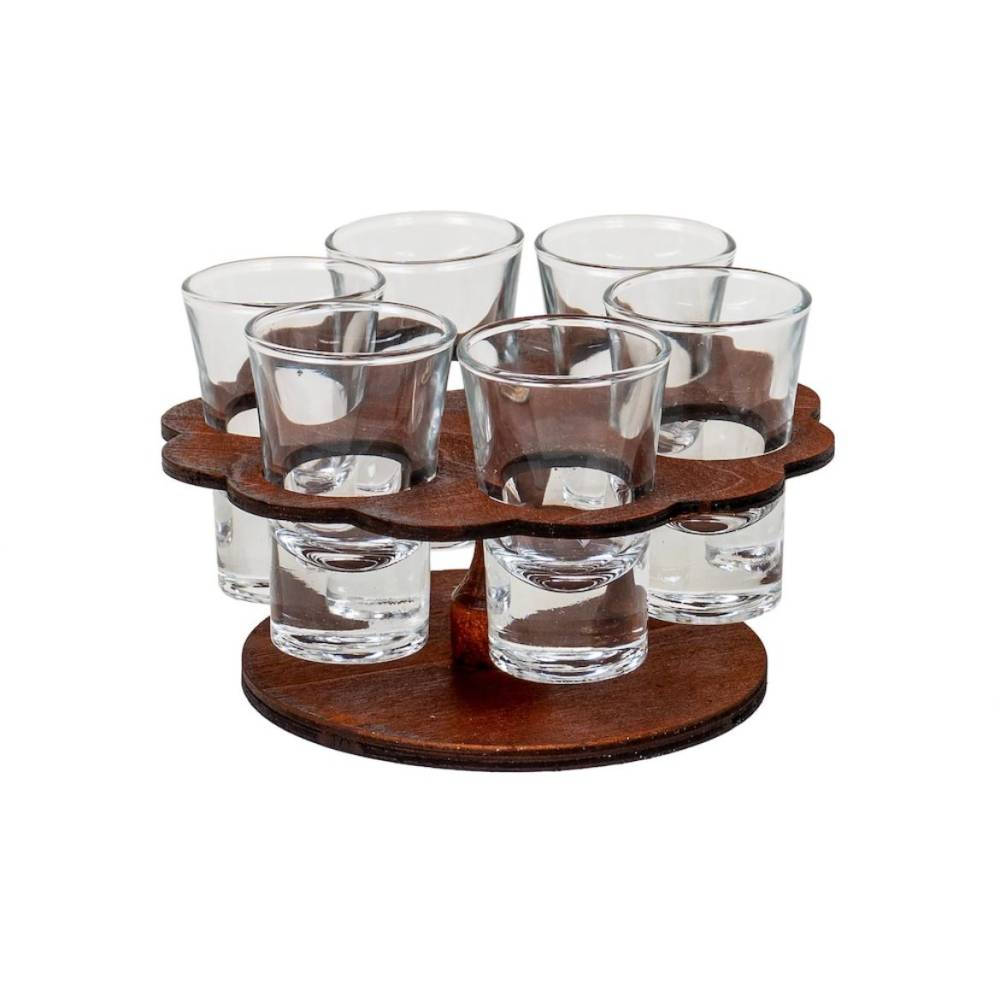 Pahare 6 buc in suport lemn in forma de floare 50ml