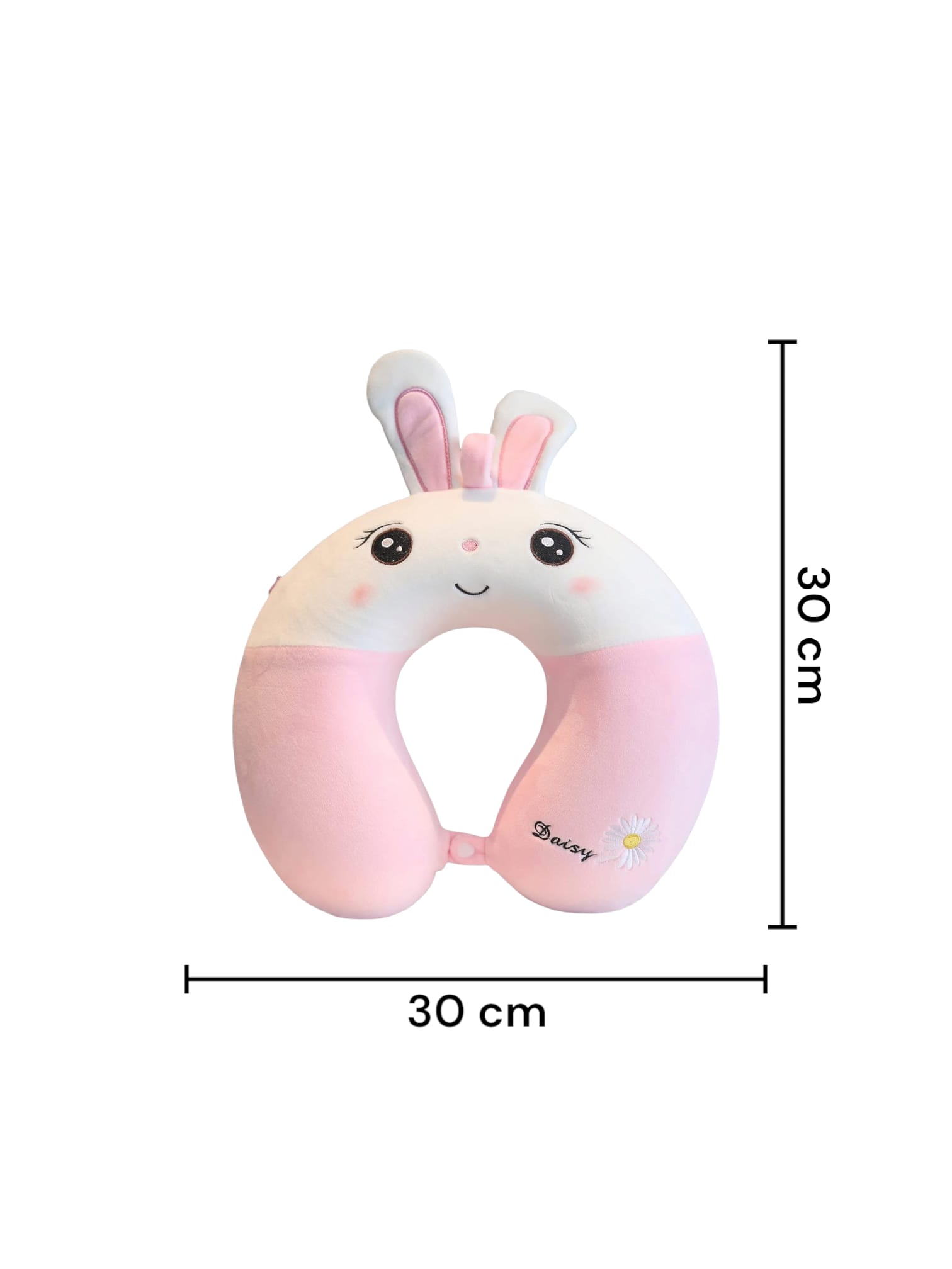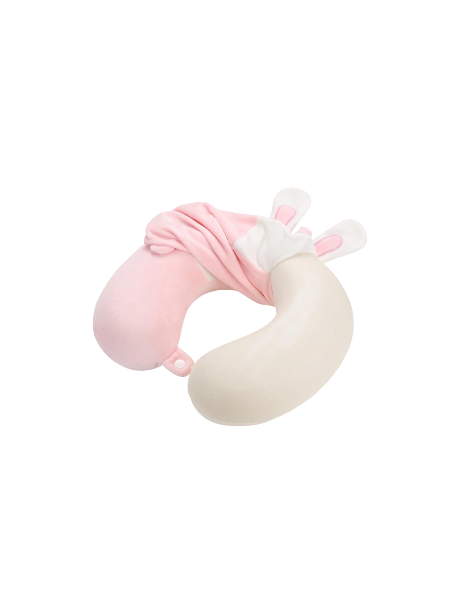 Perna de Calatorie pentru Gat si Cap, Umplutura din Spuma cu Memorie, Model Iepuras, Alb
