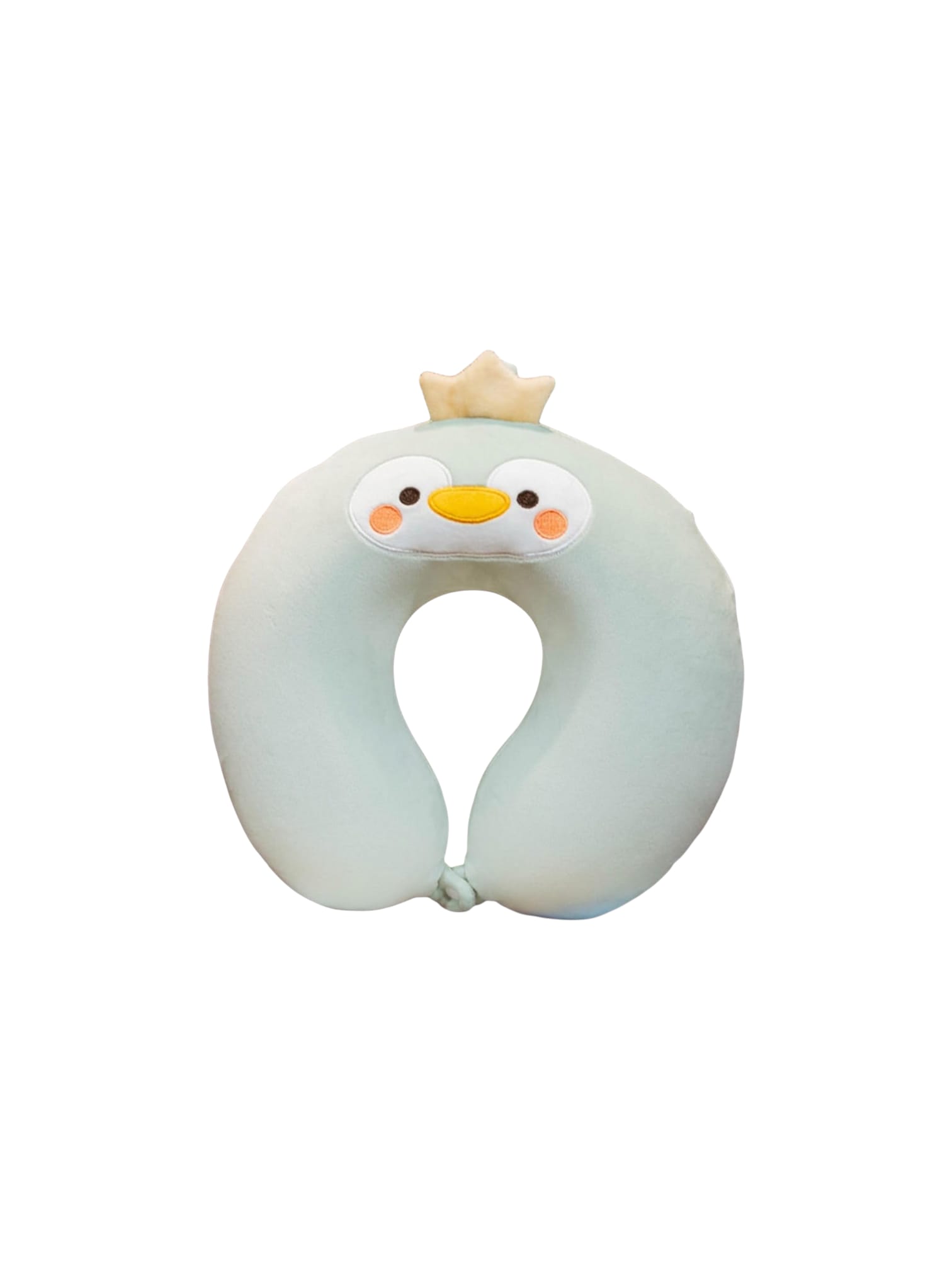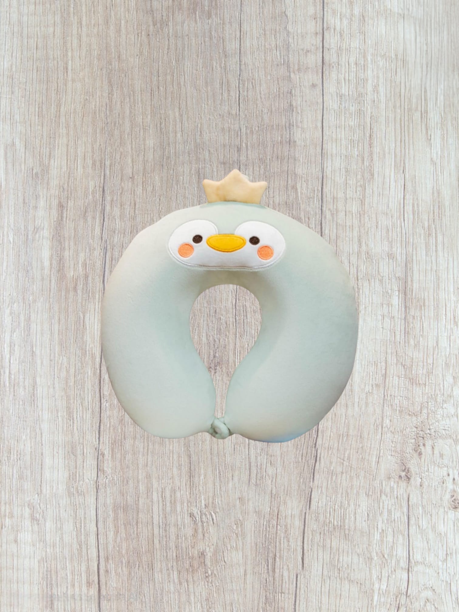 Perna de Calatorie pentru Gat si Cap, Umplutura din Spuma cu Memorie, Model Pinguin, Verde