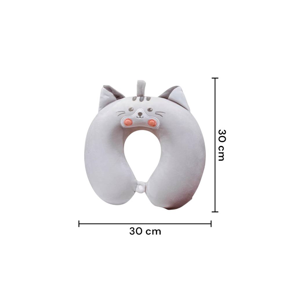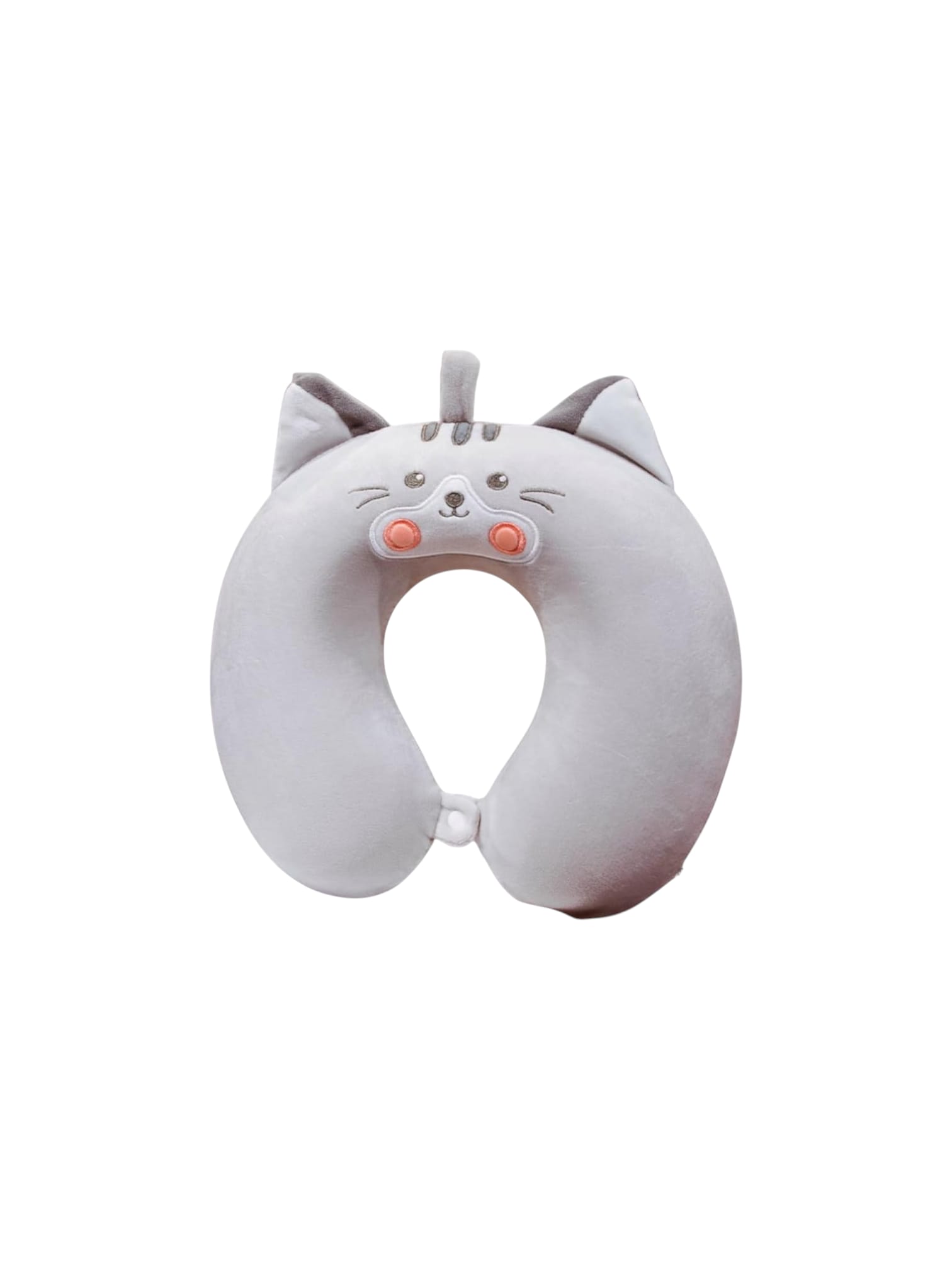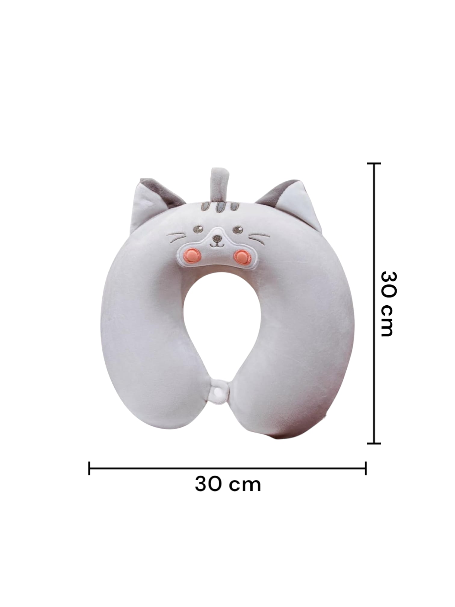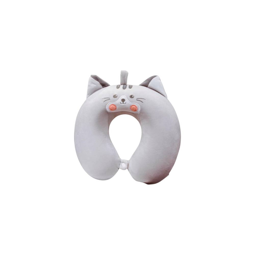 Perna de Calatorie pentru Gat si Cap, Umplutura din Spuma cu Memorie, Model Pisica, Gri
