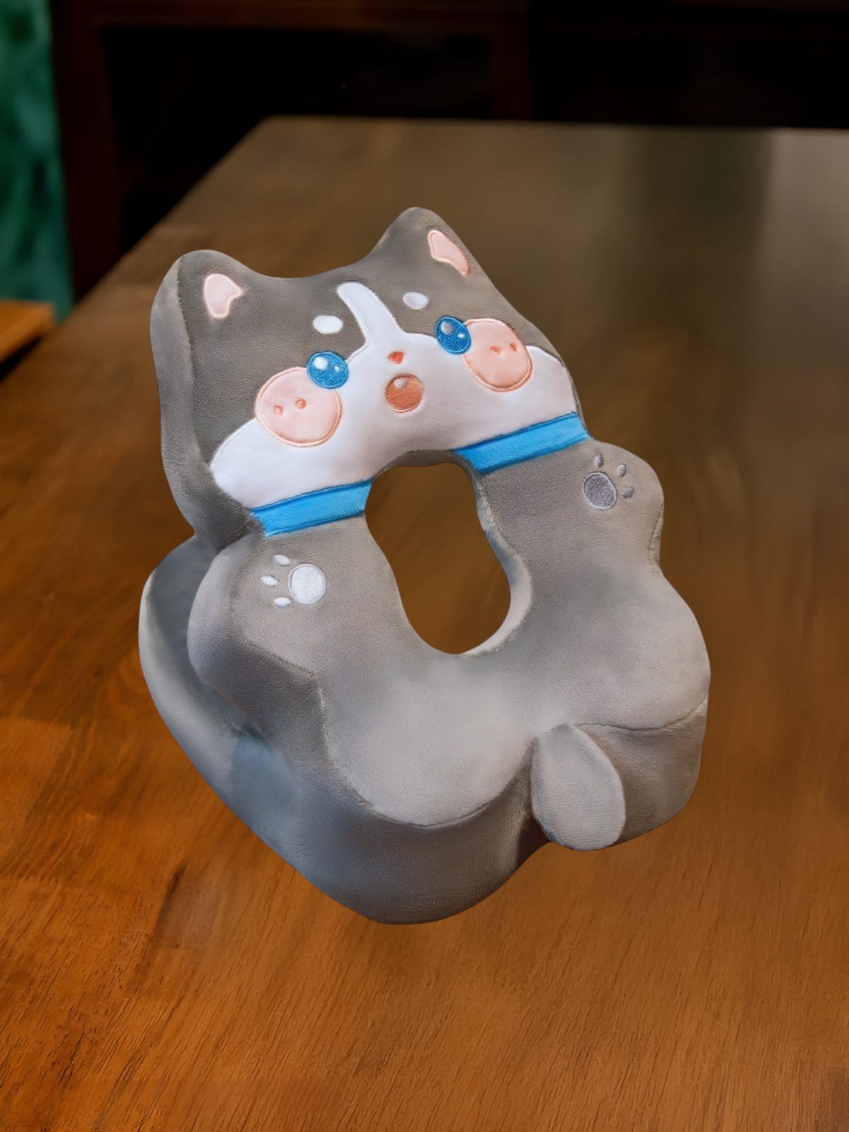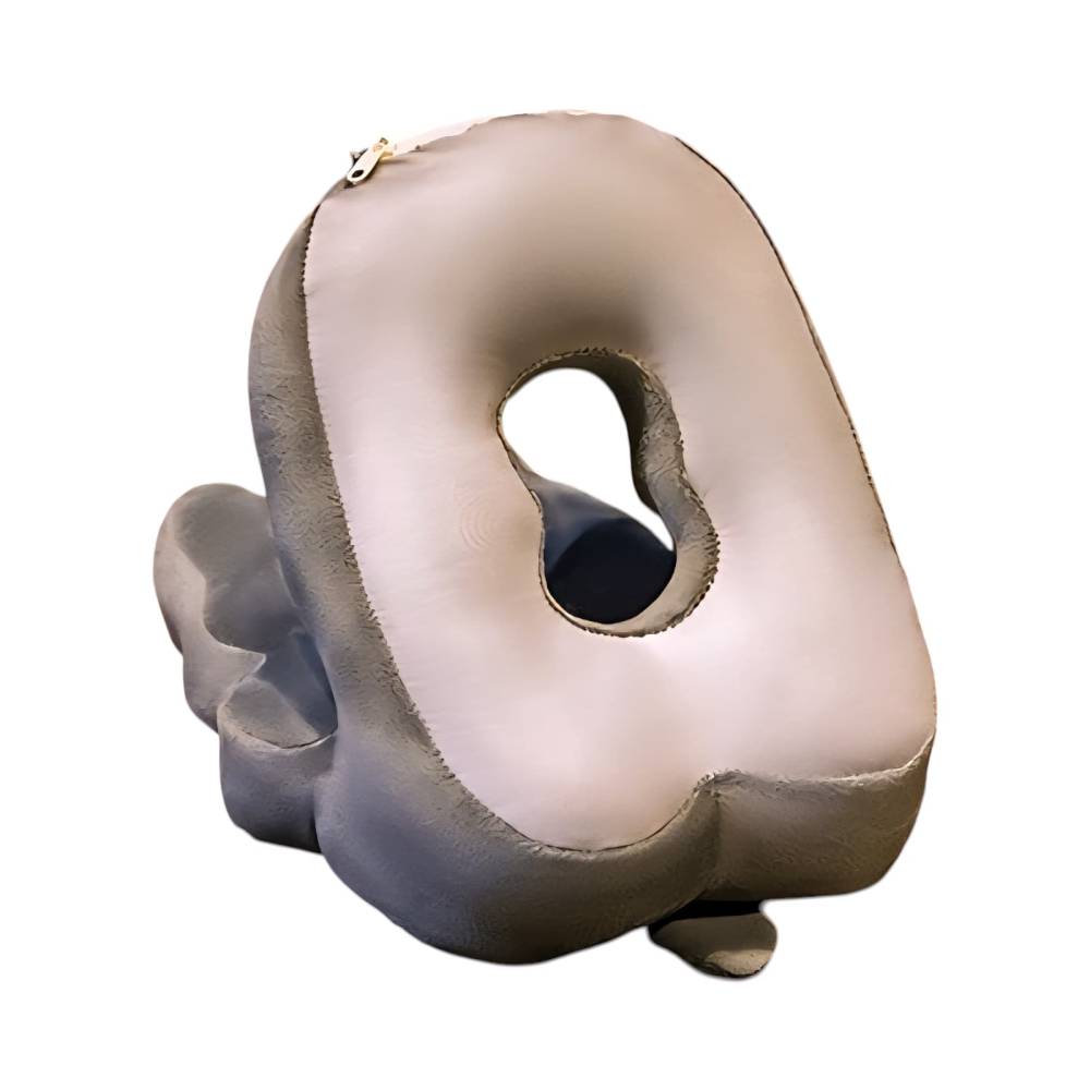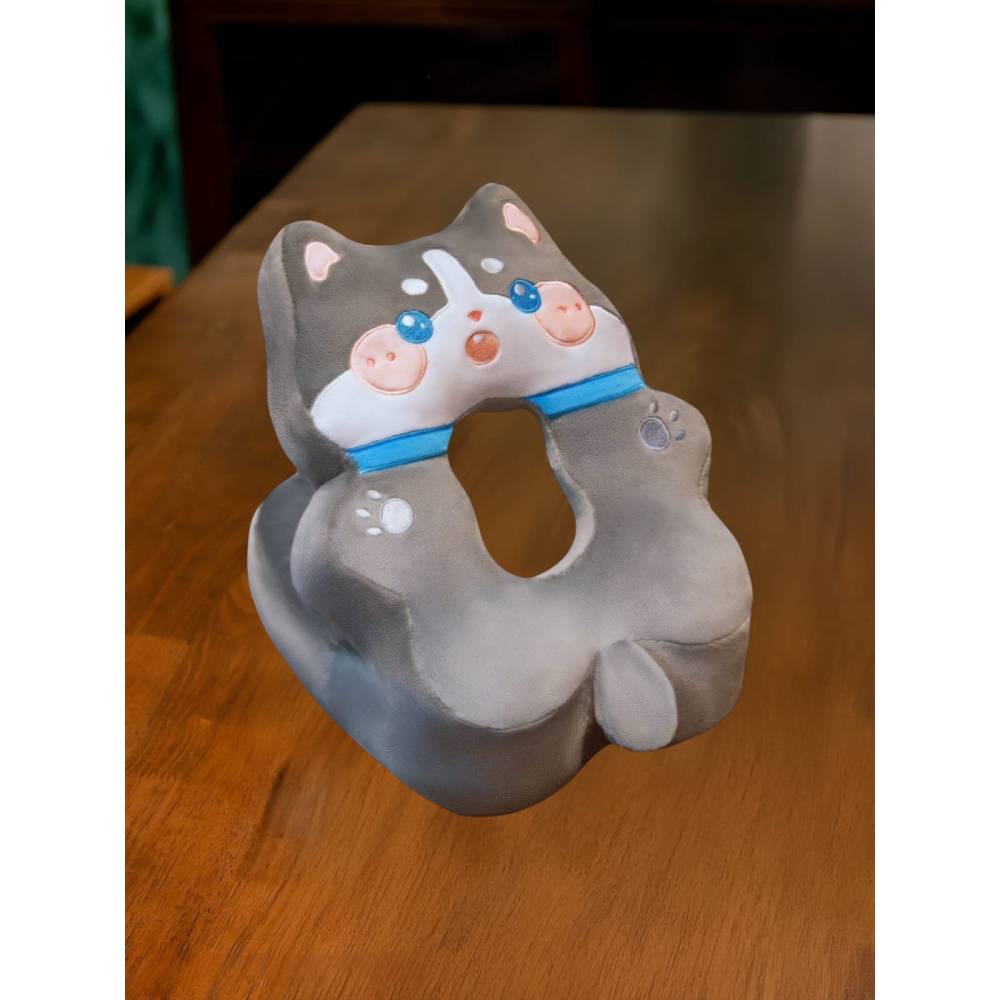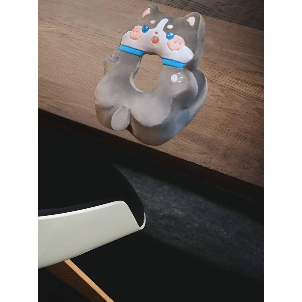 Perna din Spuma pentru Birou si Calatorii, Model Husky, Umplutura Bumbac, Suport Cap, 30x35x30 cm, Gri