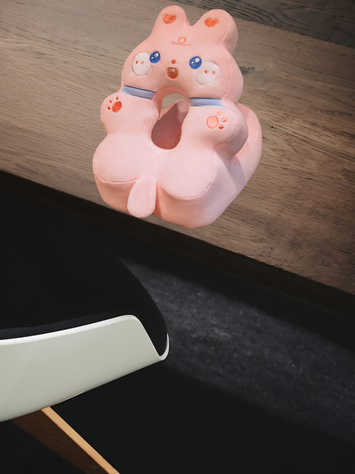 Perna din Spuma pentru Birou si Calatorii, Model Iepure, Umplutura Bumbac, Suport Cap, 30x35x30 cm, Roz