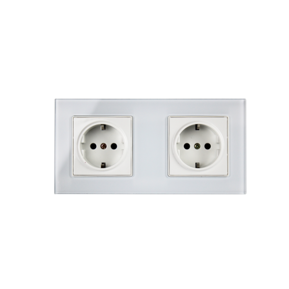 Priza Dubla Alba cu Rama din Sticla
