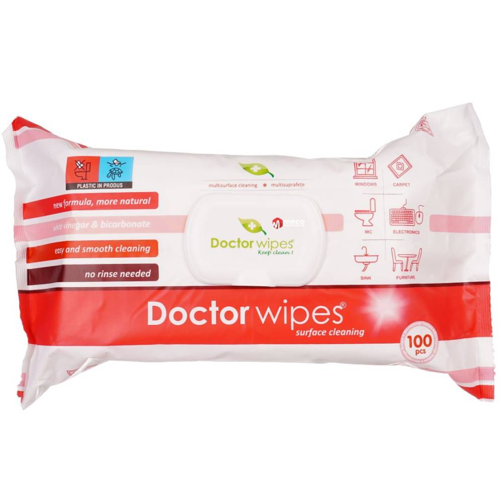 Servetele umede cu bicarbonat si otet, Doctor Wipes, 100 buc