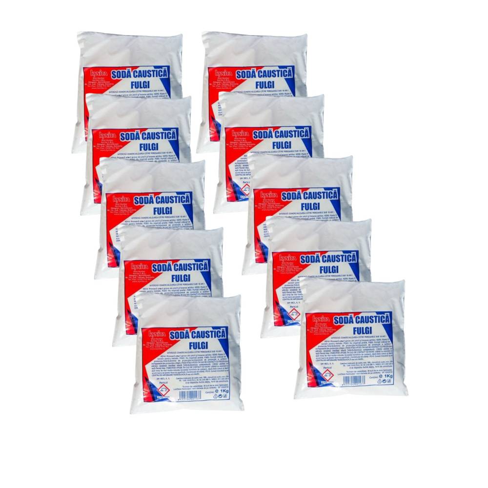 Set 10 x soda caustica fulgi, Kynita 1 kg, Hidroxid de sodiu