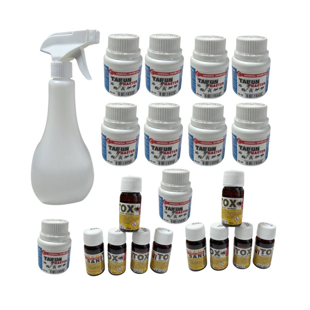 Set 10 x solutie anti insecte Sanitox 40 ml si Taifun 50 ml + pulverizator 1 litru