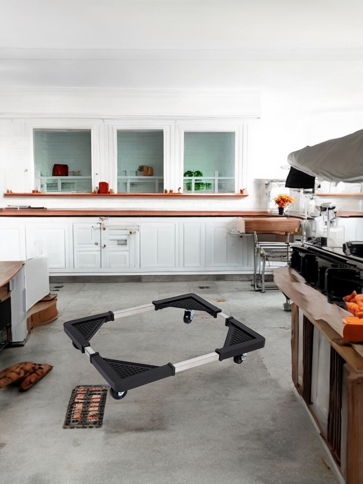 Suport cu Roti pentru aragaz, frigider, Dimensiune reglabila 56x56cm, Negru