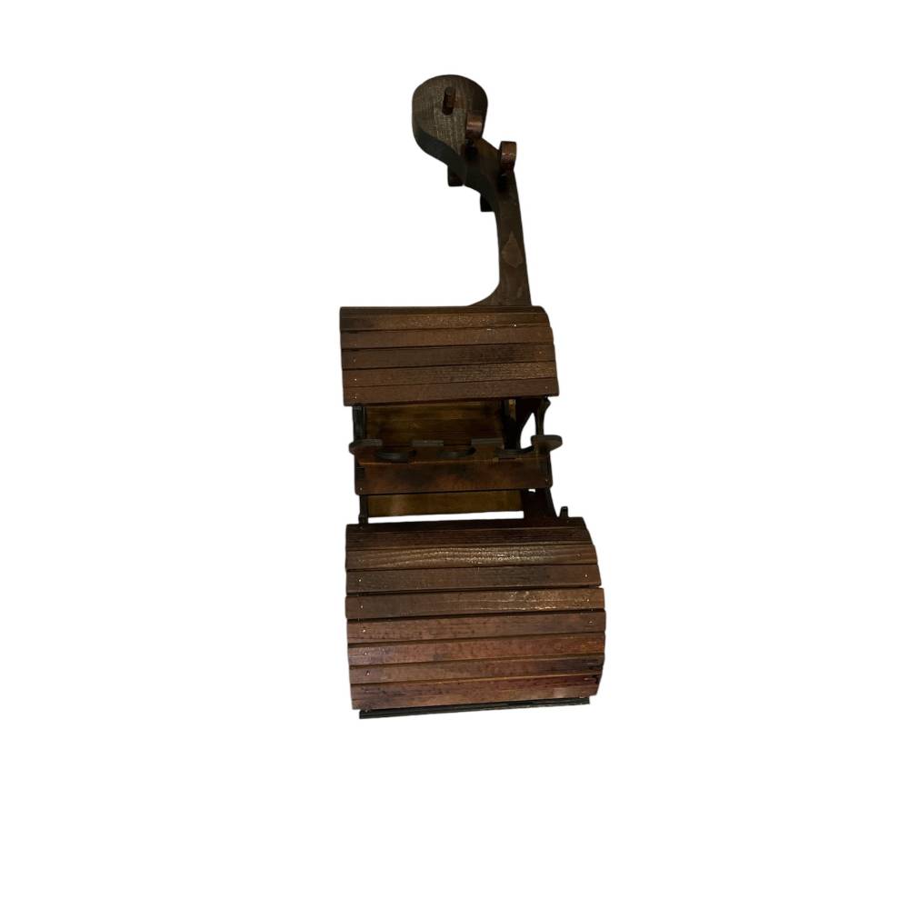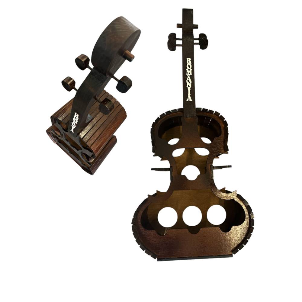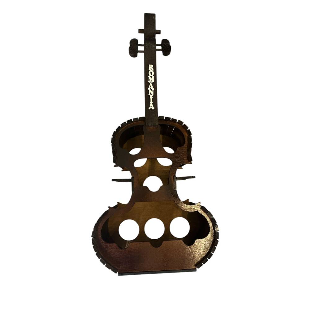 Suport pentru 6 sticle de vin si 6 pahare, din lemn, forma de vioara