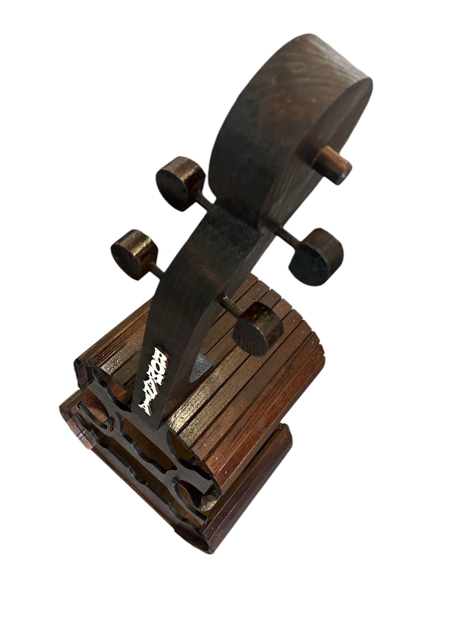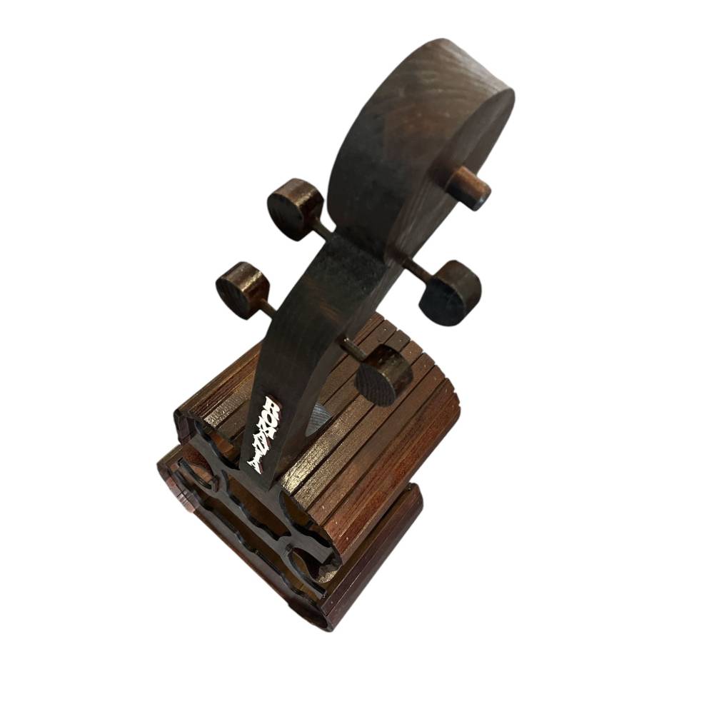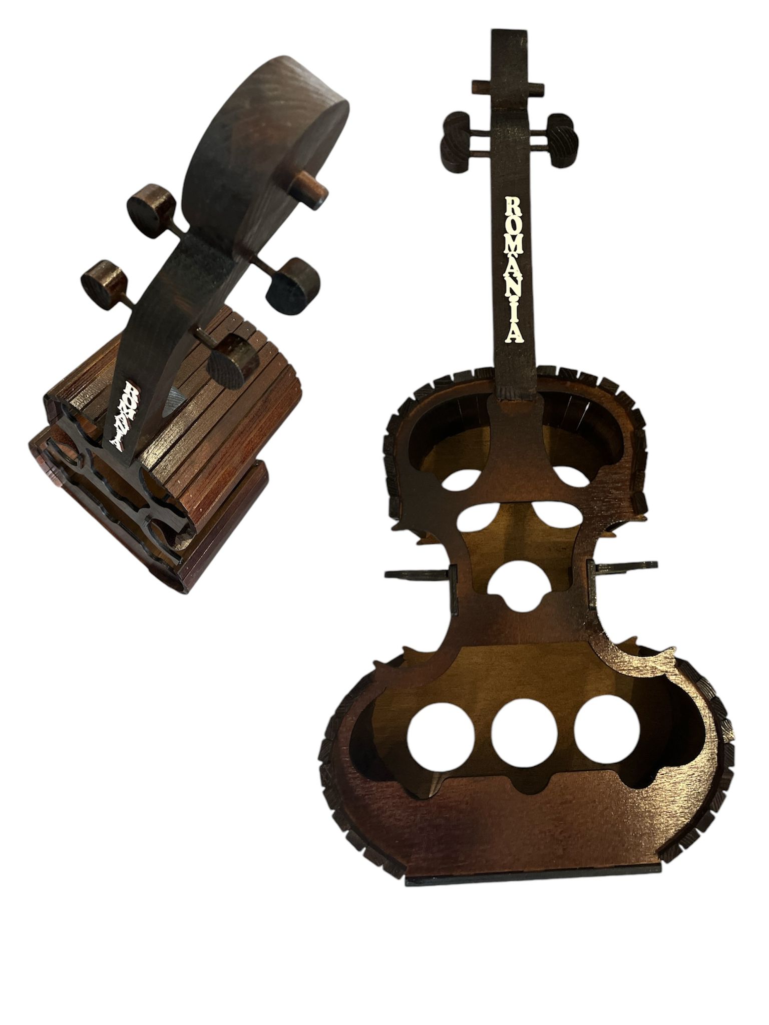 Suport pentru 6 sticle de vin si 6 pahare, din lemn, forma de vioara