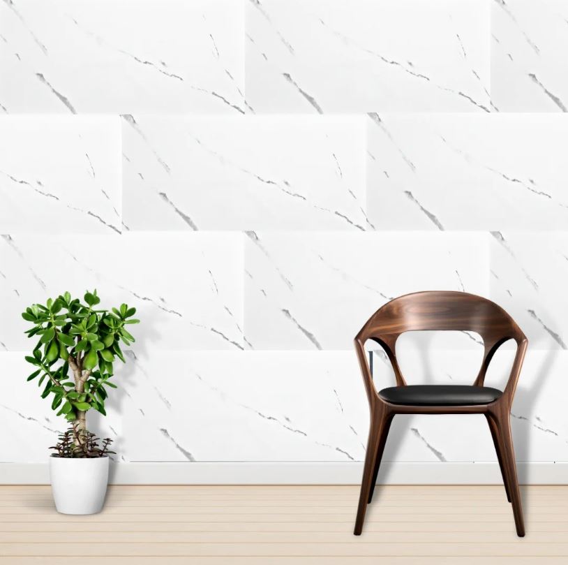 Tapet 3D autoadeziv, 60x30cm PVC, imitatie marmura, Alb, 10buc/set
