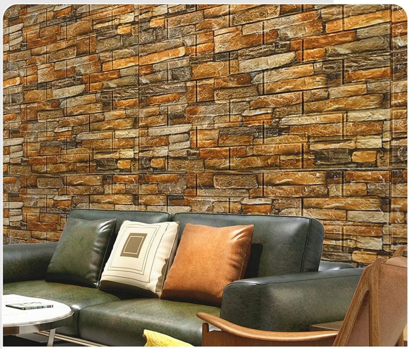 Tapet 3D autoadeziv, 70x77cm, Model Caramida, Patra Galbena, 10buc/set